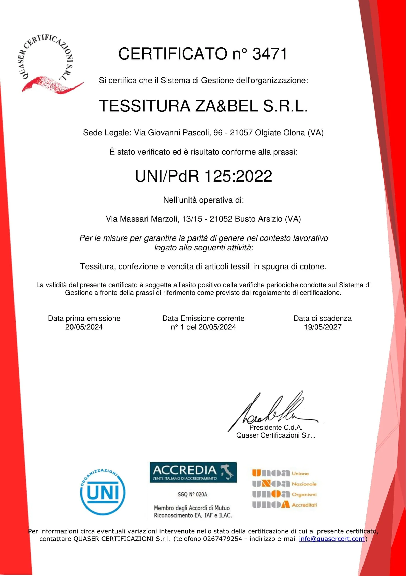 Mostrare con orgoglio il nostro certificato non è solo una testimonianza del lavoro svolto, ma anche un simbolo della nostra dedizione a creare un ambiente di lavoro dove ogni individuo ha pari opportunità di crescita, sviluppo e successo.